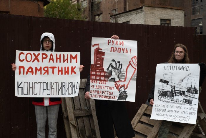 По словам градозащитников, Кузьмина обвинили в несанкционированном пикете за участие в фотосессии против сноса мясокомбината имени Кирова. Как видно на фото, Кузьмин стоял на фоне здания с плакатом: «Сохраним памятник конструктивизма».