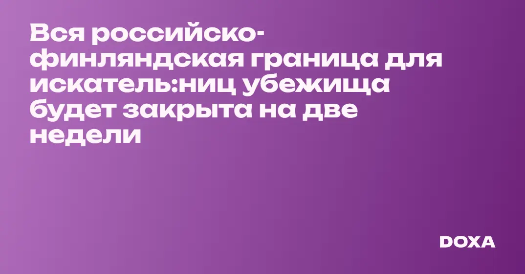 Премьер-министр Финляндии Петтери Орпо сообщил, что вся российско-финляндская граница для искатель:ниц убежища будет закрыта на две недели. Решение вступит в силу 30 ноября в 00:00 и будет действовать до 13 декабря.