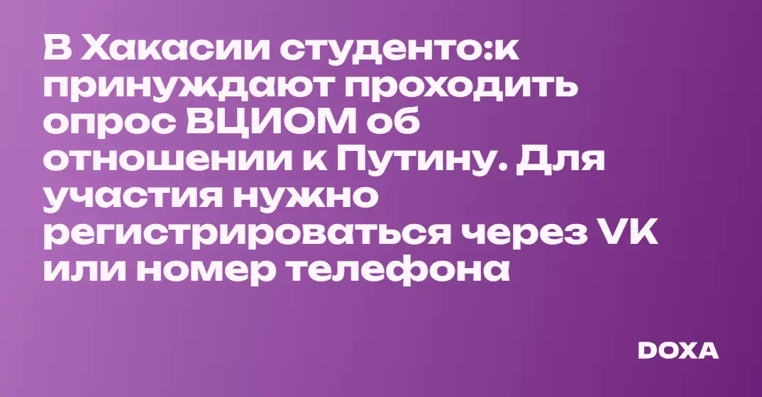 В Хакасии студенто:к принуждают проходить опрос ВЦИОМ об отношении к Путину. Для участия нужно регистрироваться через VK или номер телефона