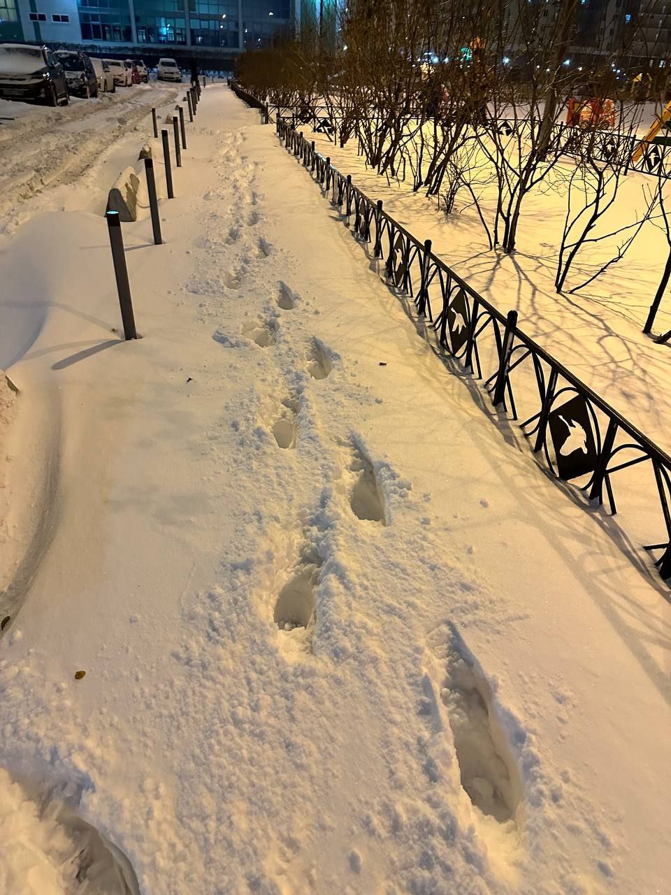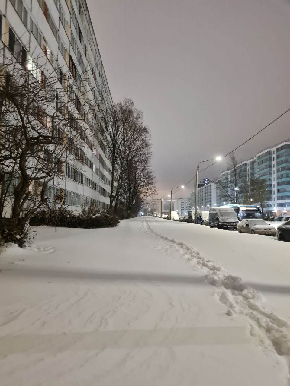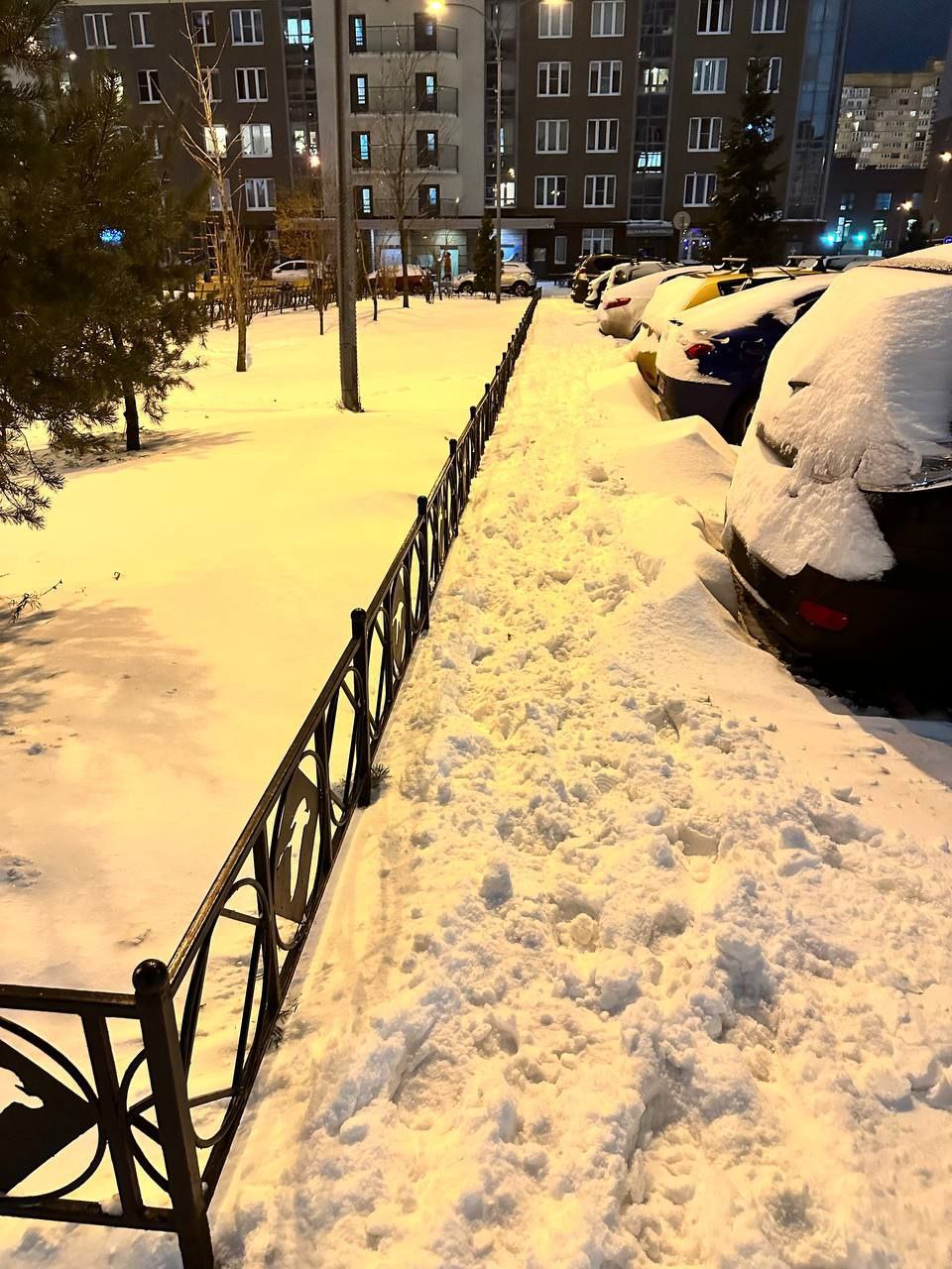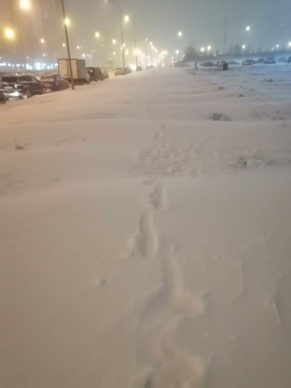 Жители Красносельского района выкладывают фото с бесконечными сугробами вдоль проезжей части и со следами на них и шутят про то, что кто-то искал тротуар. На неубранный снег на тротуарах жалуются жители Кудрово, Янино, на неубранные дворы — жители Комендантского проспекта.
