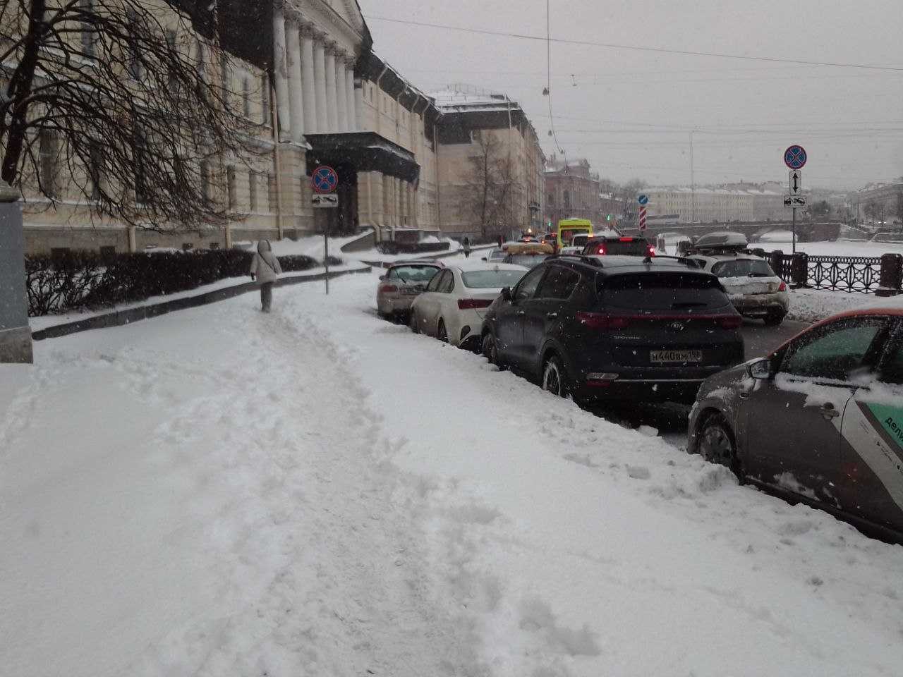 После ночной метели Петербург завален снегом