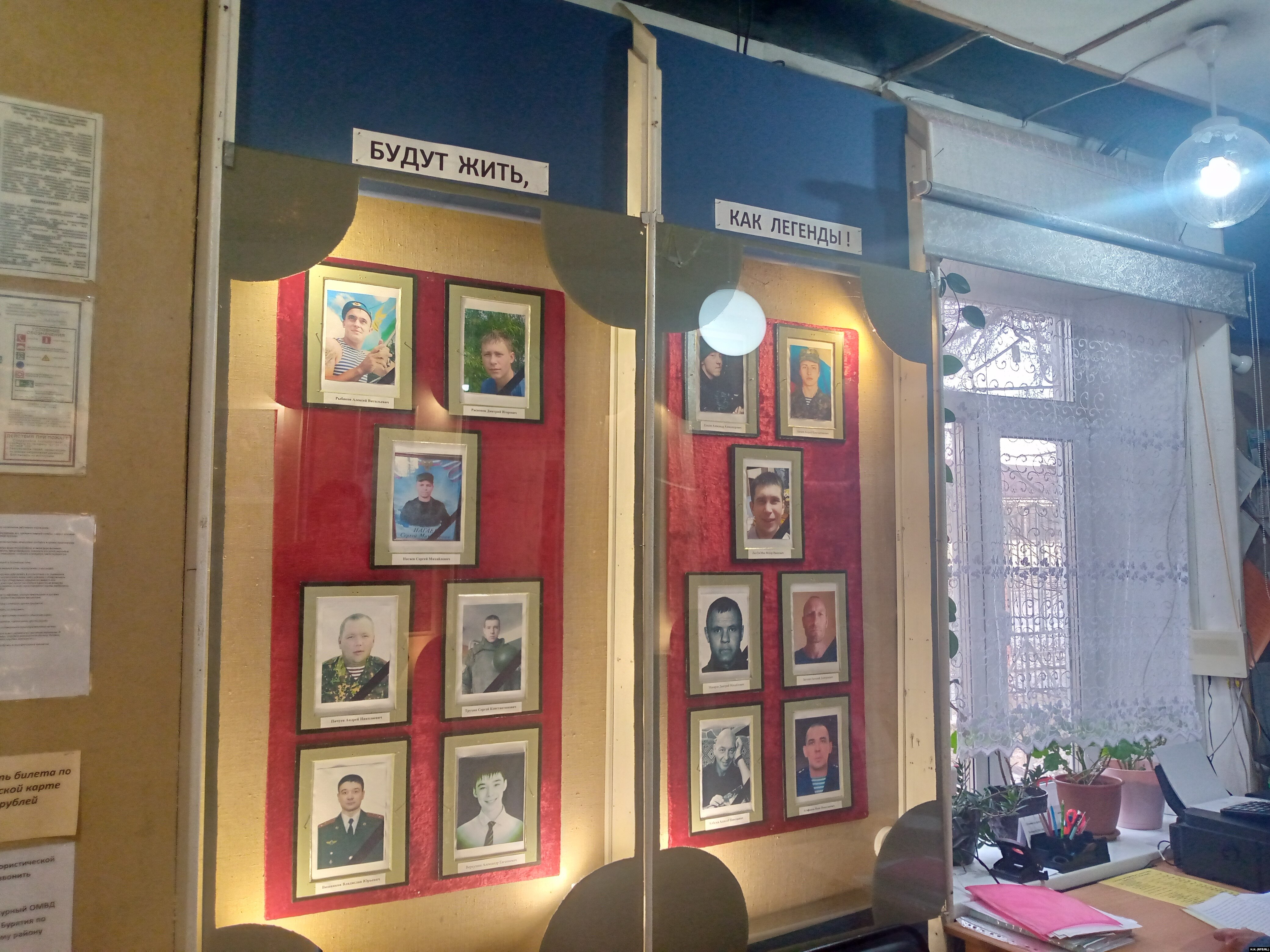 – Посмотрите на этот стенд. Здесь фотографии наших земляков из Баунтовского района (в который входит и поселок Багдарин. – С.Р.), погибших на спецоперации в Украине, – рассказывает корреспонденту Сибирь.Реалии местный экскурсовод Вячеслав. – Когда я делал эту выставку, то даже и не думал, что она приживется. Перед 9 мая делал экспозицию "Парад победителей". И осталось пустыми три стенда. Я решил сделать что-то на тему спецоперации, люди пришли, им стало интересно. А потом пришла разнарядка от администрации, чтобы стенды поставили на постоянку. Вот и стоят теперь.