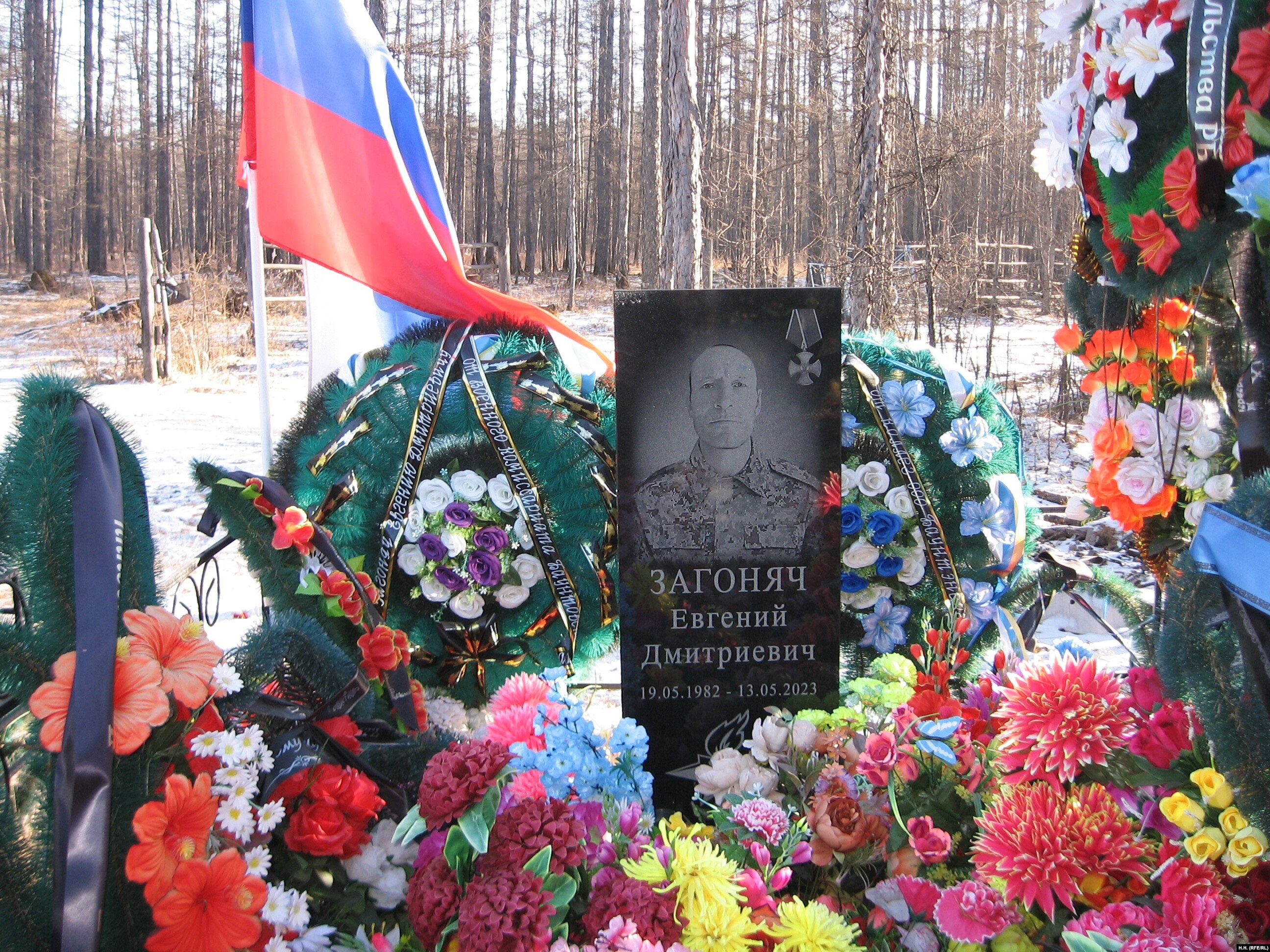 Поселковый погост находится на окраине Багдарина, но уже подходит к жилым домам. На могилах погибших в Украине – флаги. С фотографий на памятниках смотрят уже знакомые лица – те же портреты размещены на стендах багдаринского краеведческого музея.