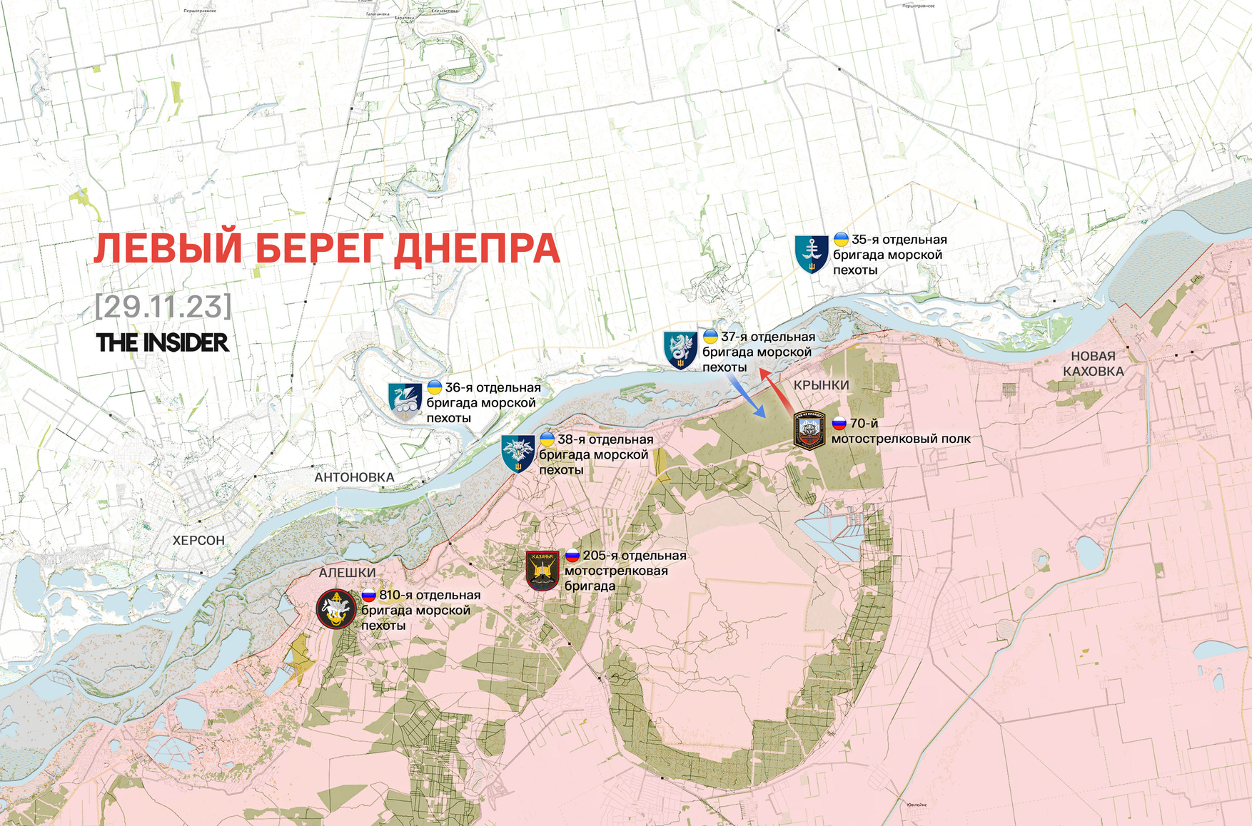WarGonzo в ежедневной сводке сообщает, что морпехи ВСУ атаковали в лесопосадках к юго-западу от Крынок и «частично имели успех».