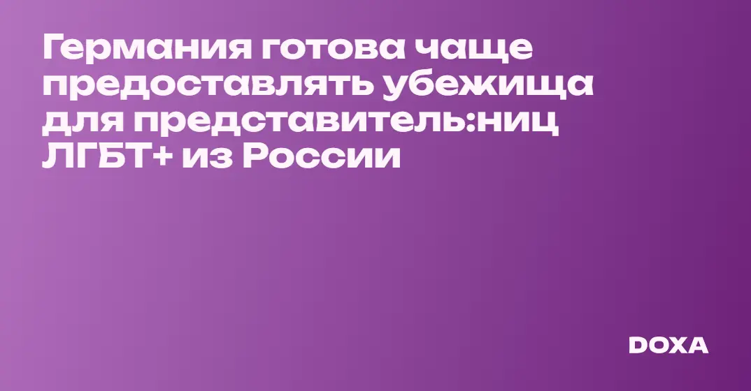 Правительство Германии будет чаще предоставлять убежища для представитель:ниц ЛГБТ+ из России из-за возросшего риска политического преследования после принятие недавнего репрессивного закона. Факт принадлежности к ЛГБТ+ будет активнее учитываться в процессе рассмотрения ходатайств, заявил представитель министерства юстиции ФРГ Максимилиан Калль. При этом процесс попадания в Германию все еще остается сложным в связи с отсутствием авиасообщения и резкого ограничения выдачи шенгенских виз.