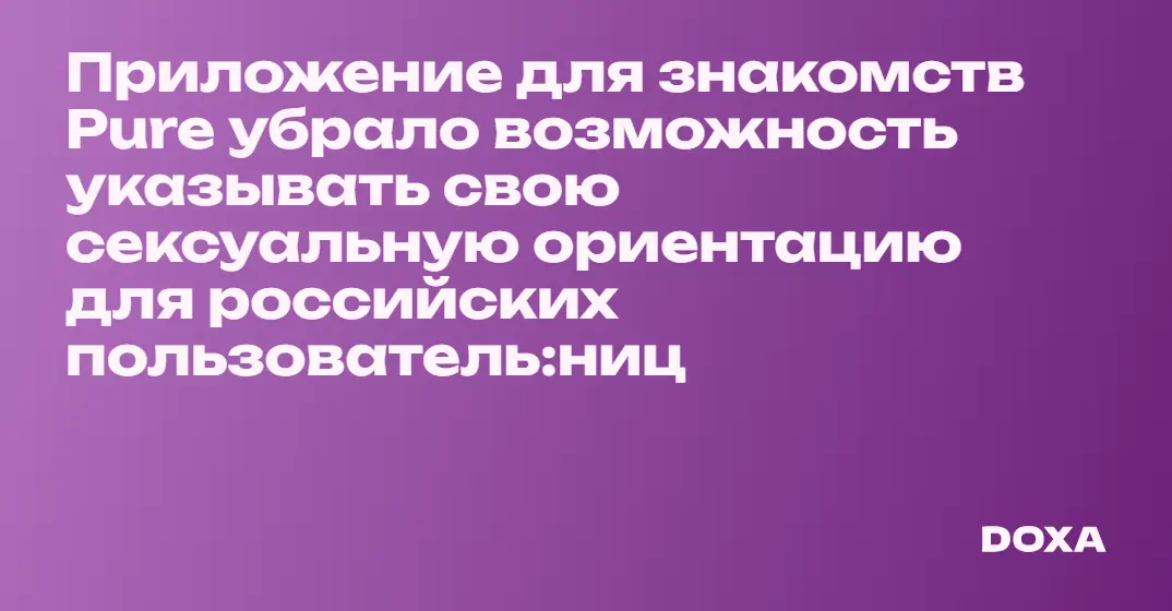 Дейтинг-приложение Pure убрало возможность указывать свою сексуальную ориентацию для российских пользователь:ниц. Это произошло после того, как Верховный суд удовлетворил иск Минюста о признании «международного общественного движения ЛГБТ» экстремистской организацией и запрете его «деятельности».