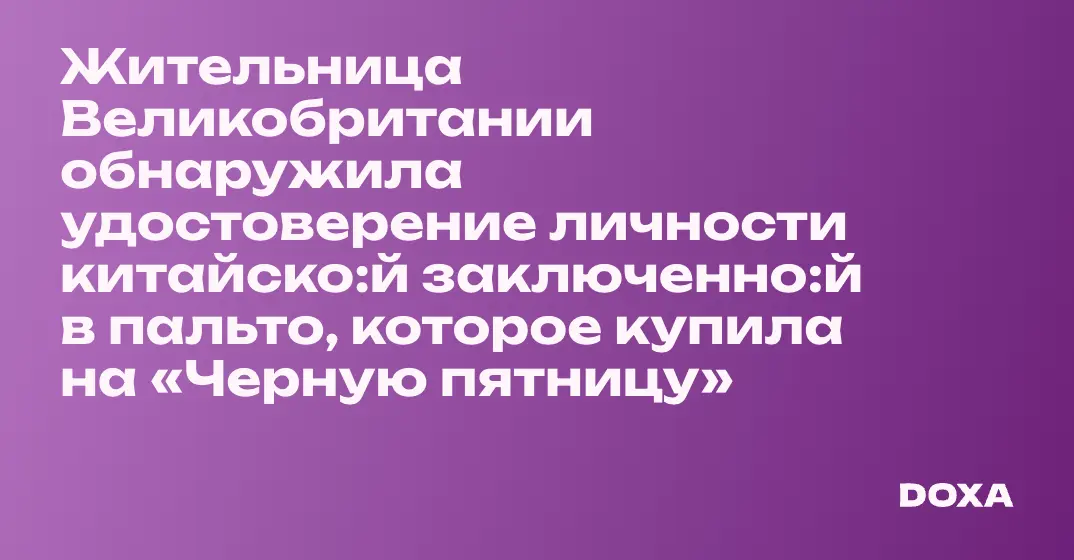 Жительница Великобритании обнаружила удостоверение личности китайско:й заключенно:й в пальто, которое купила на «Черную пятницу»