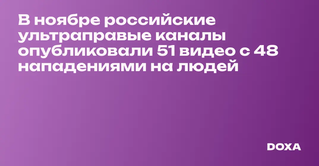 В ноябре российские ультраправые каналы опубликовали 51 видео с 48 нападениями на людей