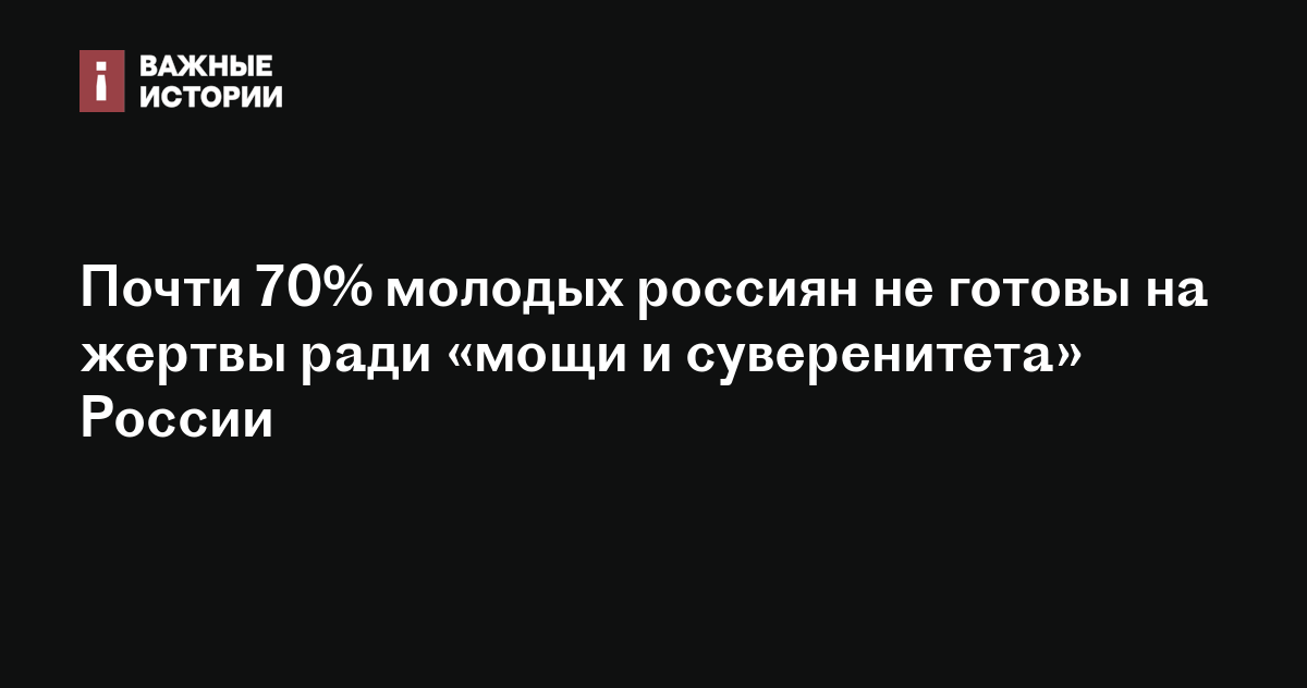 Почти 70% молодых россиян не готовы на жертвы ради «мощи и суверенитета» России