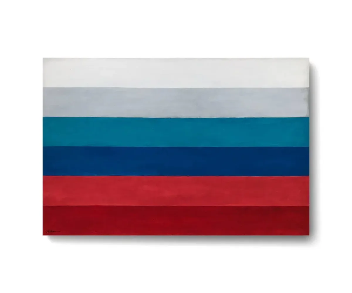 Russian street artist Philippenzo, full name Filipp Kozlov, has unveiled a new artwork — Russian Rainbow. The canvas consists of six horizontal stripes, similar to the LGBT flag, only in the colours of the Russian tricolour.