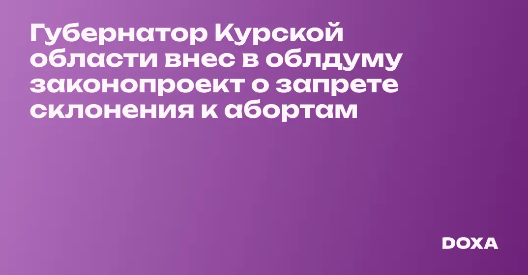 Губернатор Курской области Роман Старовойт внес в областную думу законопроект «о запрете склонения женщин к искусственному прерыванию беременности». Законопроект опубликован на сайте думы, внимание на него обратила «Медиазона».