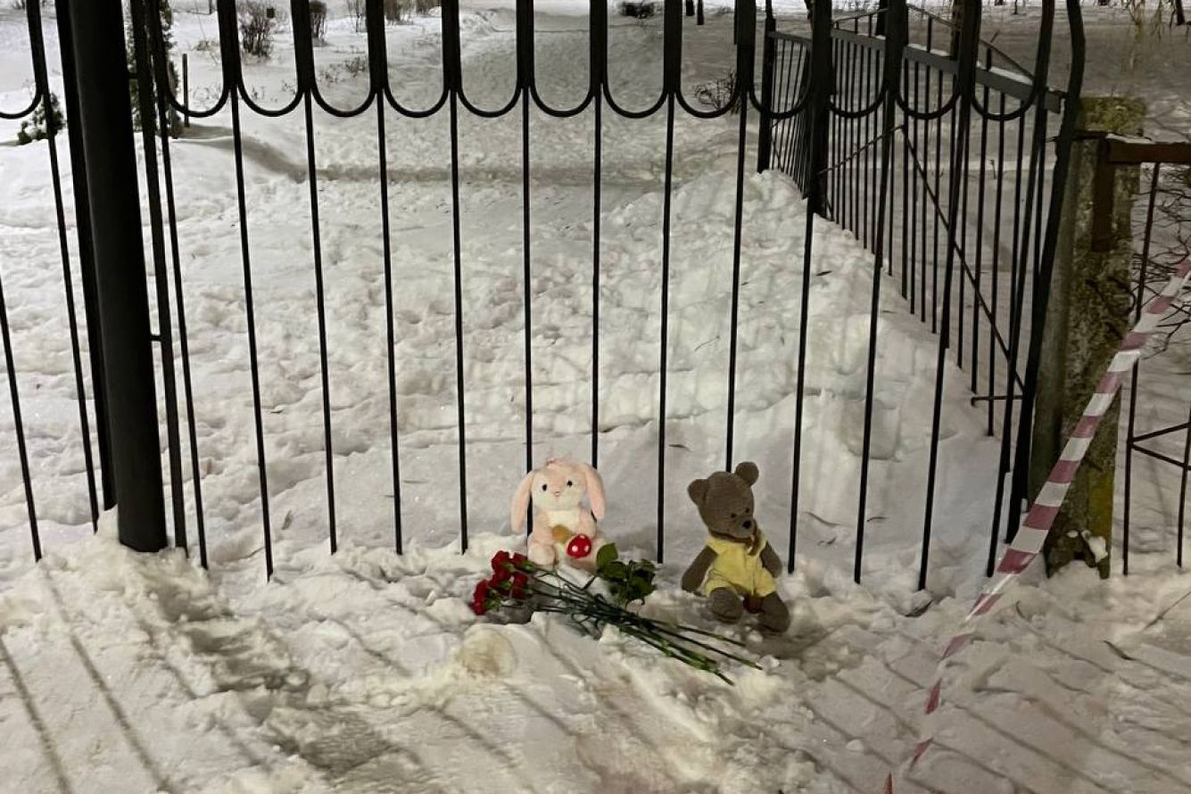 Спустя несколько минут собеседница «Берега» все-таки решается подойти ближе. Оказывается, кто-то уже попытался создать мемориал: на снегу неподалеку от входа в школу лежат светло-розовый игрушечный кролик и пять красных гвоздик. Женщина кладет рядом плюшевого медведя и вытирает слезы. Следом подходит другая, с виду ее ровесница, и опускает на снег еще несколько роз.