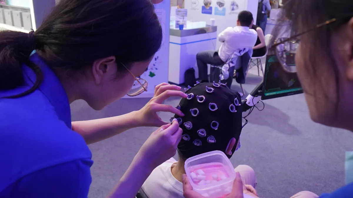 Продукты интерфейса мозг-компьютер представлены на Китайской (Шанхайской) международной ярмарке импорта и экспорта технологий 15 июня 2023 г. / Future Publishing / Getty Images