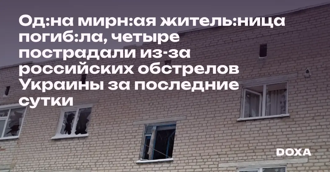 Од:на мирн:ая житель:ница погиб:ла, четыре пострадали из-за российских обстрелов Украины за последние сутки