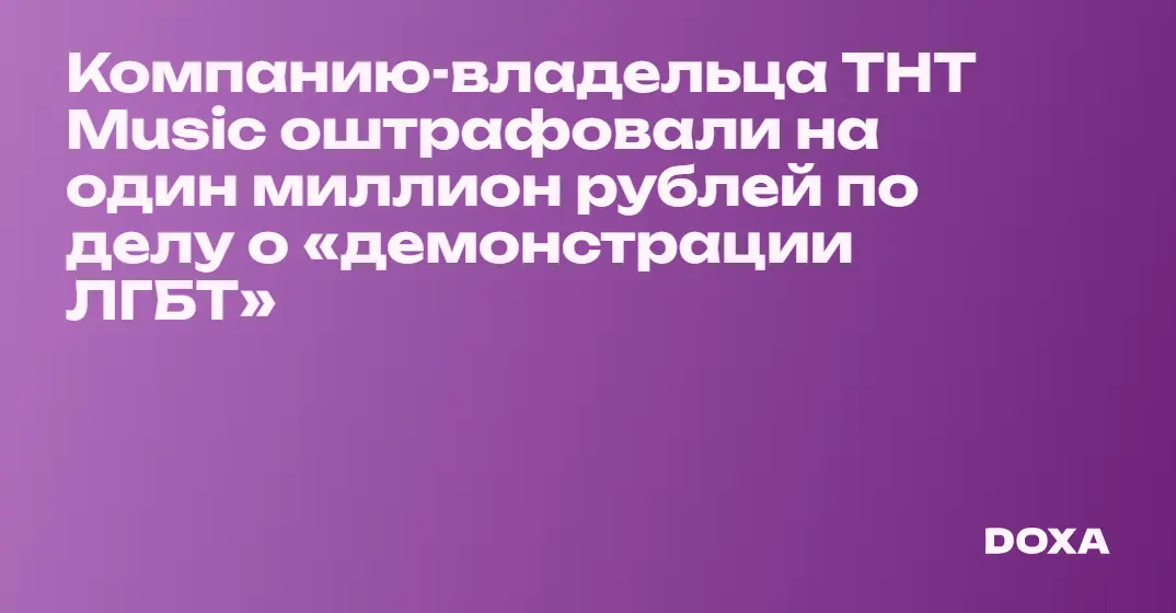 Компанию-владельца ТНТ Music оштрафовали на один миллион рублей по делу о «демонстрации ЛГБТ»