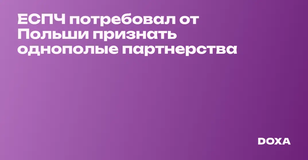 Европейский суд по правам человека постановил, что Польша нарушает права людей на частную жизнь и потребовал от страны легазилизовать однополые партнерства. Ранее пяти парам из Лодзи, Варшавы и Кракова отказали в праве на заключение брака, ссылаясь на то, что Польша допускает союз «только между мужчиной и женщиной».
