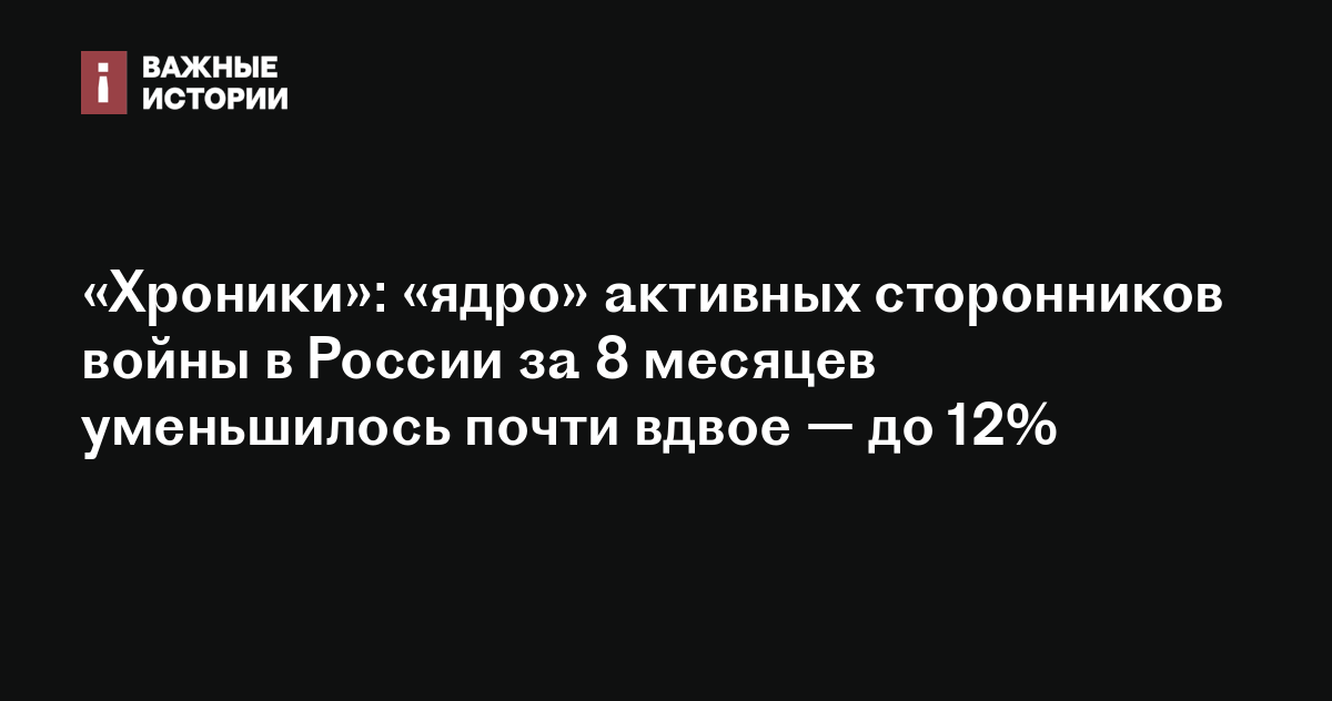«Хроники»: «ядро» активных сторонников войны в России за 8 месяцев уменьшилось почти вдвое — до 12%