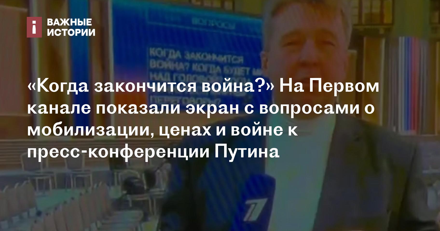 «Когда закончится война?» На Первом канале показали экран с вопросами о мобилизации, ценах и войне к пресс-конференции Путина