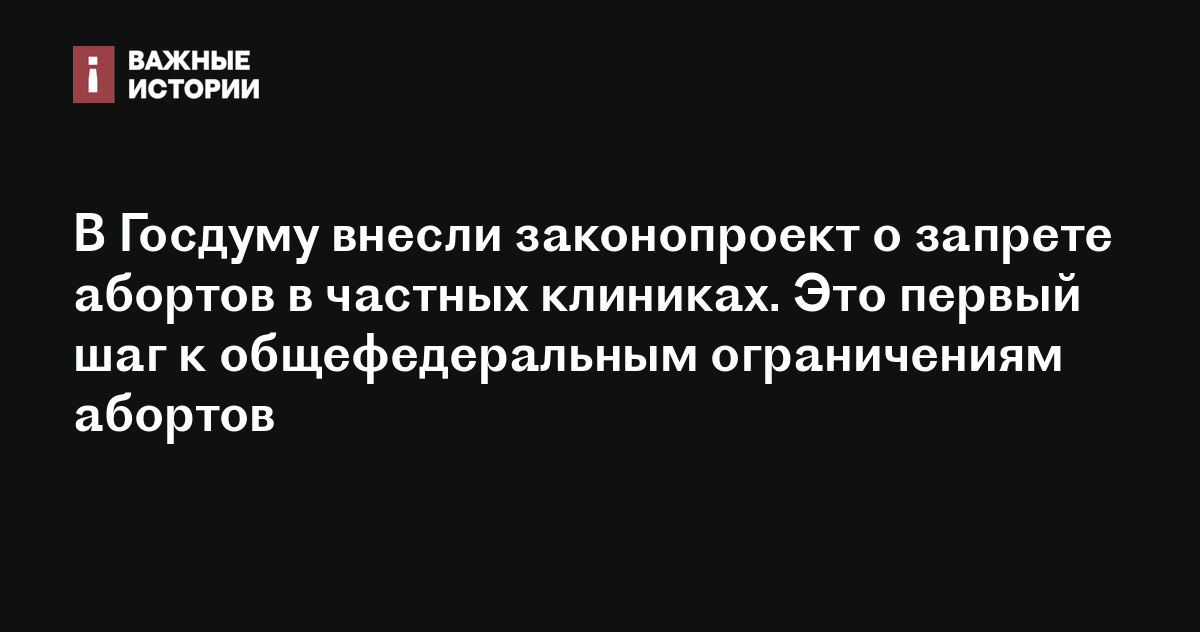 В Госдуму внесли законопроект о запрете абортов в частных клиниках. Это первый шаг к общефедеральным ограничениям абортов