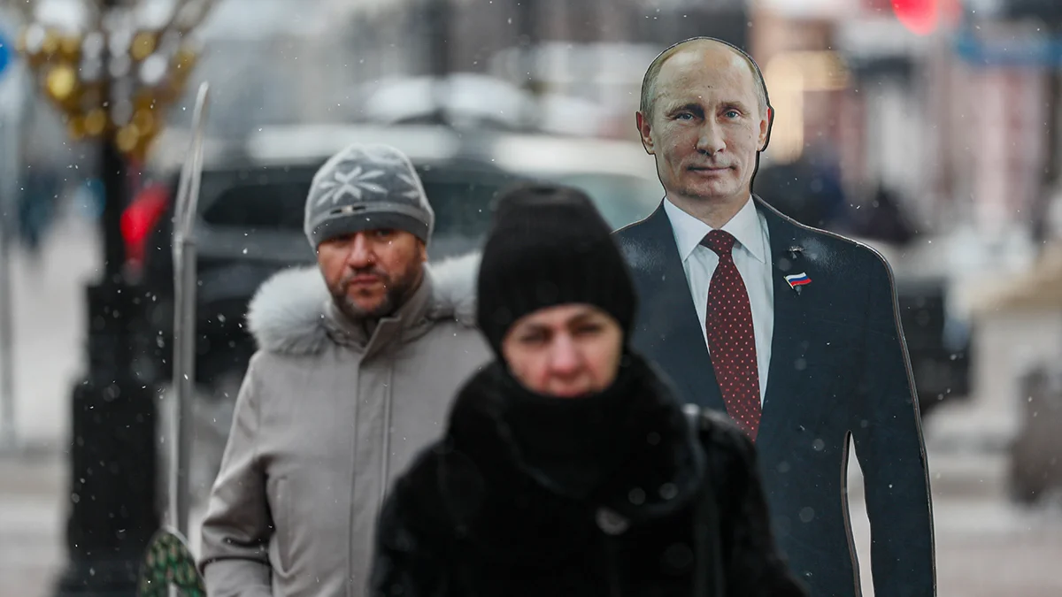 Картонная фигура президента России Владимира Путина в центре Москвы. Фото: Юрий Кочетков / EPA-EFE