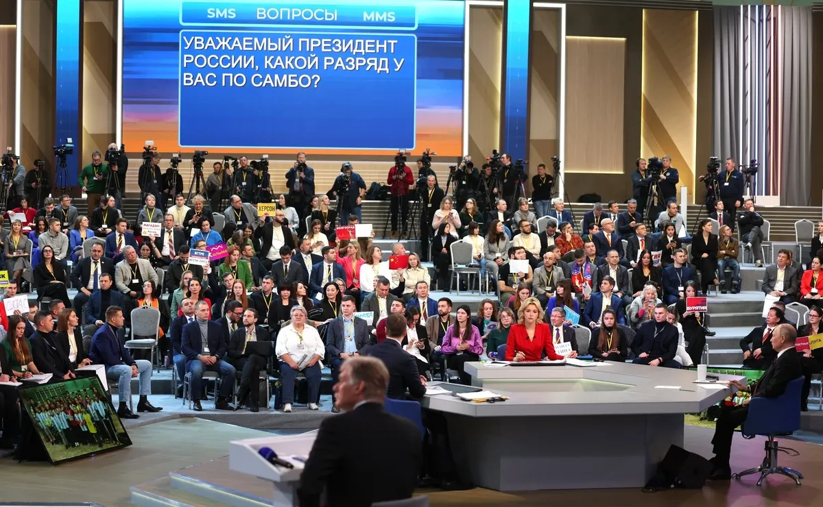 Ответы, за редчайшими исключениями, не принесли ничего нового. Мир наступит, когда СВО «достигнет своих целей» (по смыслу — когда Украина капитулирует). Начать СВО «Россию вынудили». «Необходимости в новой мобилизации нет». «Главное — это укрепление суверенитета» (без объяснений, кто и как на него покушался). «Одесса — русский город». «Двойников у президента нет». Единственная новость — Путин выступил против запрета абортов («Решение должна принимать женщина»). Зато на вопросы жен мобилизованных он не ответил. Как и на многие из тех, что всплывали на экране. Например: «Как можно переехать в Россию, о которой рассказывают по Первому каналу?» «Почему ваша реальность расходится с нашей действительностью?» «Почему местная власть работает так, что тысячи людей вынуждены обращаться лично к президенту? Нужна ли нам такая власть?»