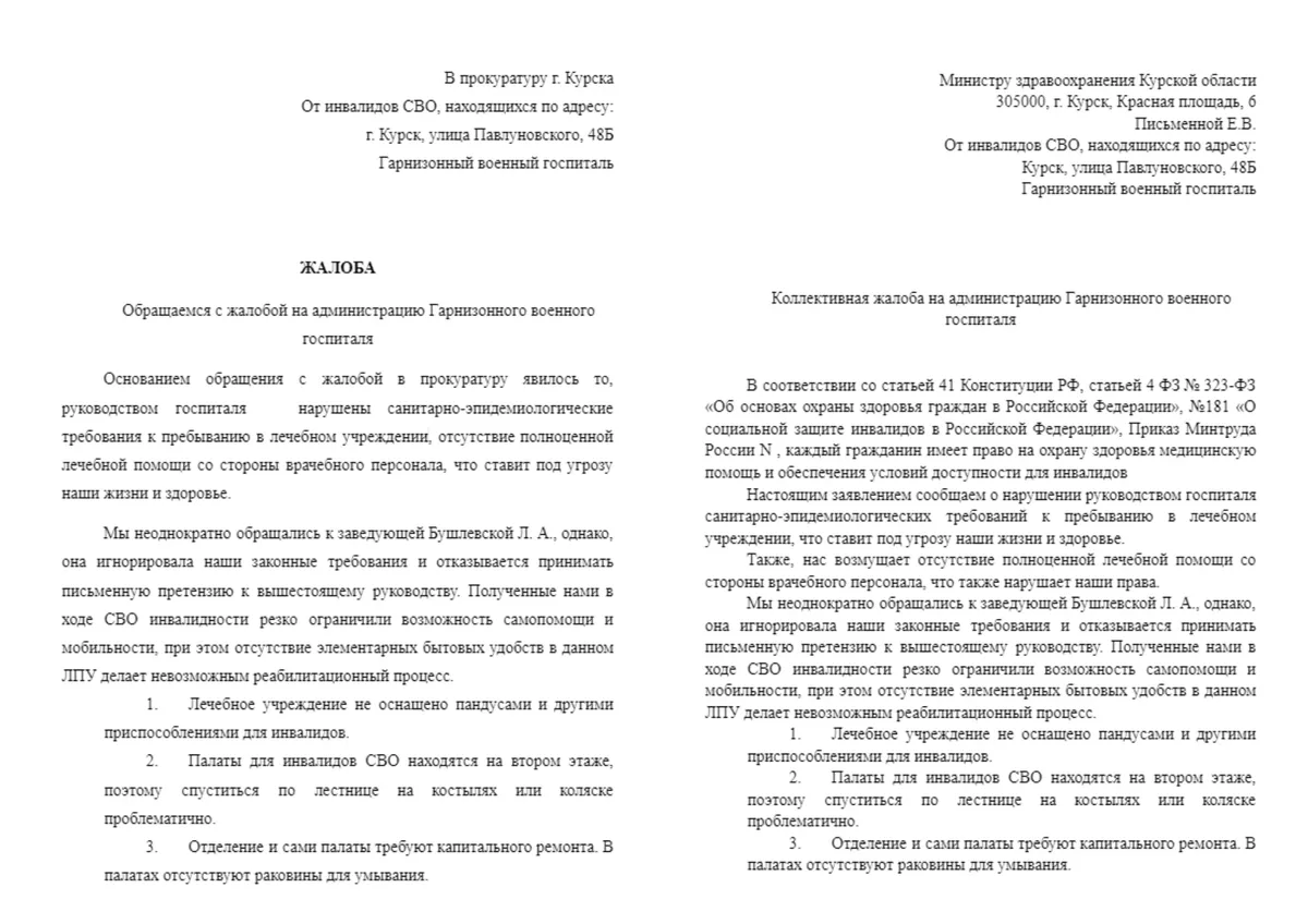 «Наша рота почти вся ушла с госпиталя не долеченная». Ставшие инвалидами военные из «Шторм Z» пожаловались в прокуратуру на условия содержания в госпитале в Курске