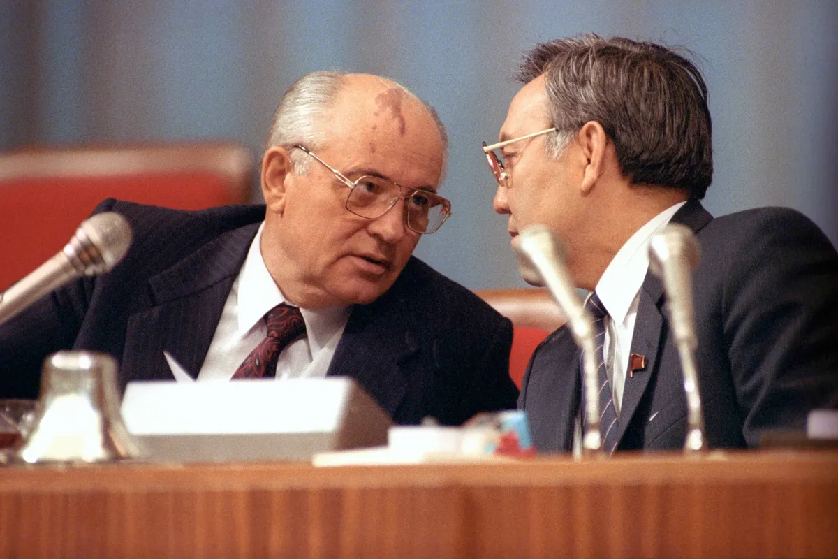 Большой блок текста посвящен причинам распада СССР. Помимо глобального поражения большевистской стратегии развития, экономической катастрофы, тлетворного влияния западных «партнеров» и центробежных настроений в республиках, гибель империи стала следствием противостояния Горбачева и Ельцина. «Чтобы “подсидеть” Горбачева, он (Ельцин) не страшился столкнуть государство в пропасть, обострить и без того углубившийся кризис». «По-моему, толчком для многих поступков послужили внутренние убеждения Горбачева, пожелавшего остаться в истории не только реформатором, но и политиком мирового уровня». Эту критику подытоживает цитата из книги Сергея Плеханова: «Взаимная ненависть двух людей, поставивших собственные властные амбиции выше интересов государства, сделала то, чего не могли добиться враждебные армии». И ведь совсем не возникает ассоциаций с отстроенной вопреки общественному мнению новой столицей, дорогими, но яркими международными мероприятиями в ней, происходящими на фоне внутренней неустроенности, наконец, ее новым, пусть и недолговечным названием, статусом «лидера нации» и прижизненными памятниками.