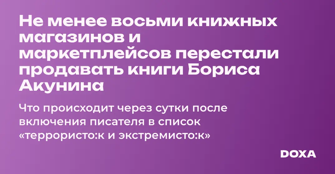 После внесения Акунина в список «террористо:к и экстремисто:к» ТАСС опубликовало комментарий адвоката, что продажа произведений Акунина будет классифицироваться как финансирование терроризма. Юрист:ки правозащитных организаций при этом подчеркивают, что распространение книг Акунина, спектаклей и фильмов по ним не может преследоваться, так как сами произведения из них не находятся в списках запрещенных материалов. Тем не менее, 19 декабря магазины, маркетплейсы, библиотеки и театры начали отказываться от работ Акунина и убирать их с полок. DOXA собрала, что происходит через сутки после внесения писателя в список «террористо:к и экстремисто:к», а также поговорила с университетскими библиотеками о доступности его книг:
