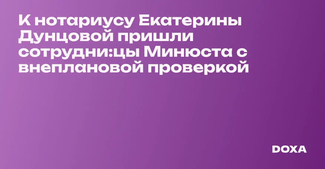 К нотариусу Екатерины Дунцовой пришли сотрудни:цы Минюста с внеплановой проверкой