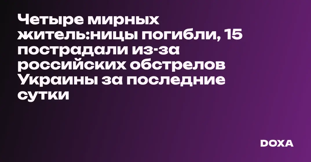Четыре мирных житель:ницы погибли, 15 пострадали из-за российских обстрелов Украины за последние сутки