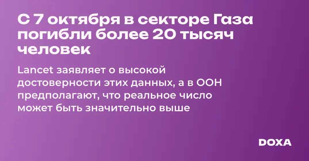 С 7 октября в секторе Газа погибли более 20 тысяч человек. Lancet заявляет о высокой достоверности этих данных, а в ООН предполагают, что реальное число может быть значительно выше