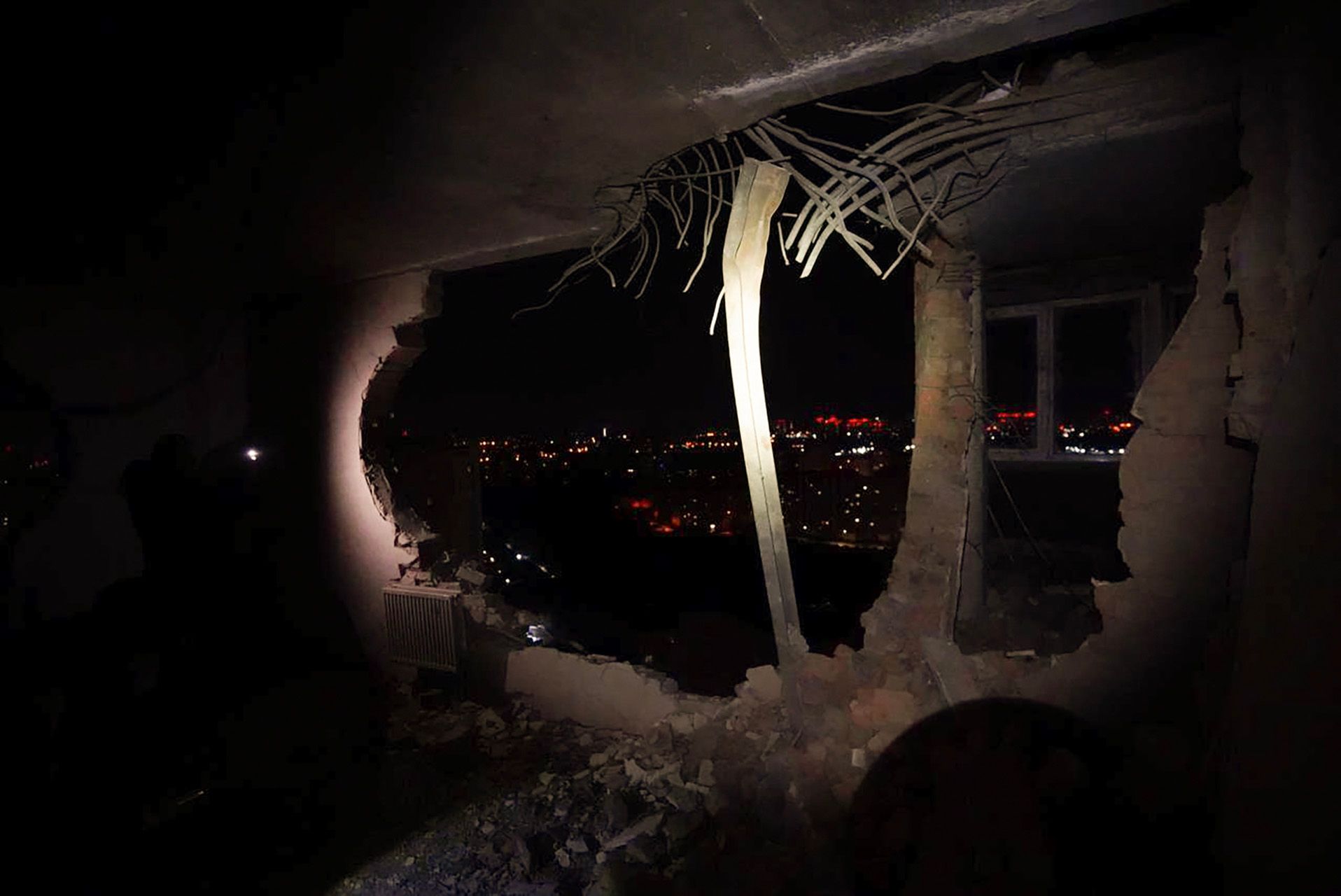 В ночь на 22 декабря российские войска атаковали беспилотниками Киев. Мэр Виталий Кличко сообщил, что в Соломенском районе в западной части города обломки сбитого дрона повредили многоэтажный дом: частично разрушены несущие стены между 24-м, 25-м и 26-м этажами. Пострадали два человека.