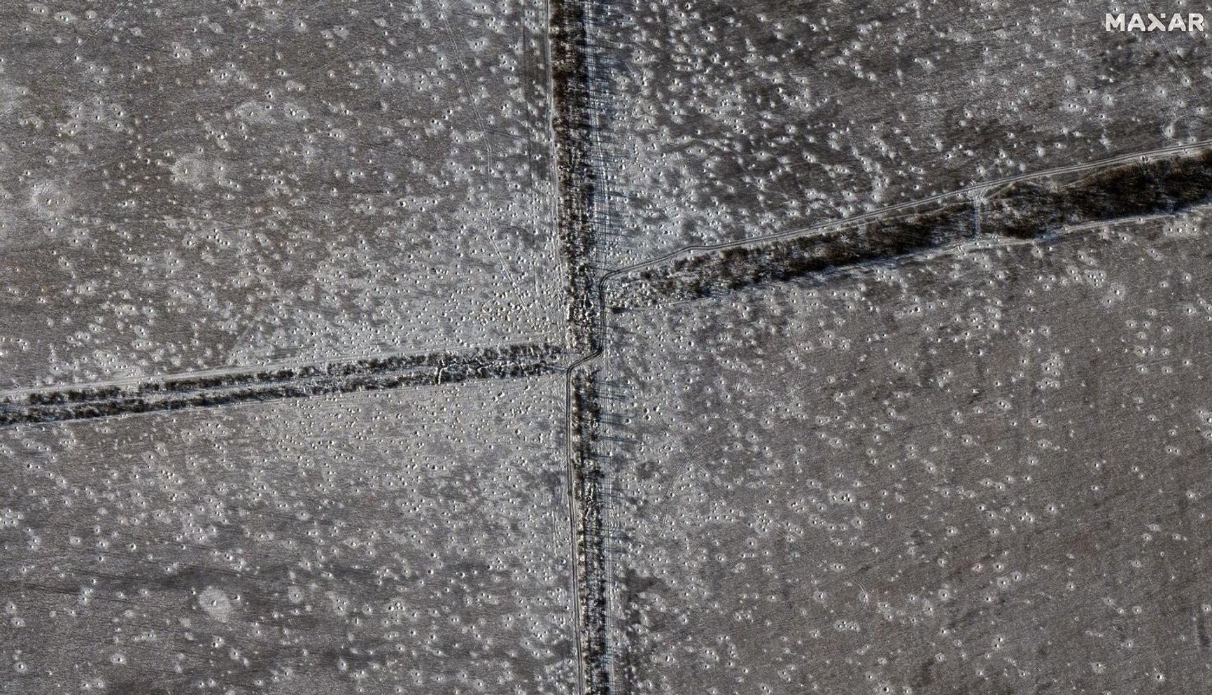Shell craters on the outskirts of Bakhmut, January 7, 2023