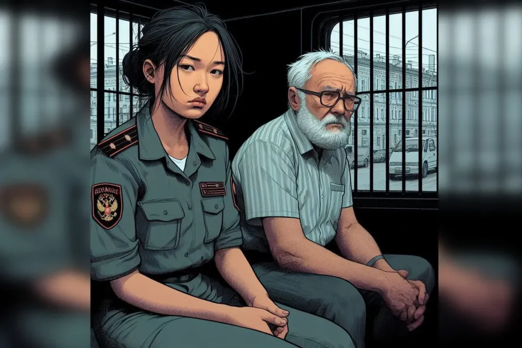 Заключённому на вид было хорошо за семьдесят. У него была опрятная белая борода, но по его лицу было заметно, что в Лефортово он провёл уже не один месяц: впалые глаза, посеревшая кожа. Поймав взгляд конвоирши, он молча уставился на свои колени.