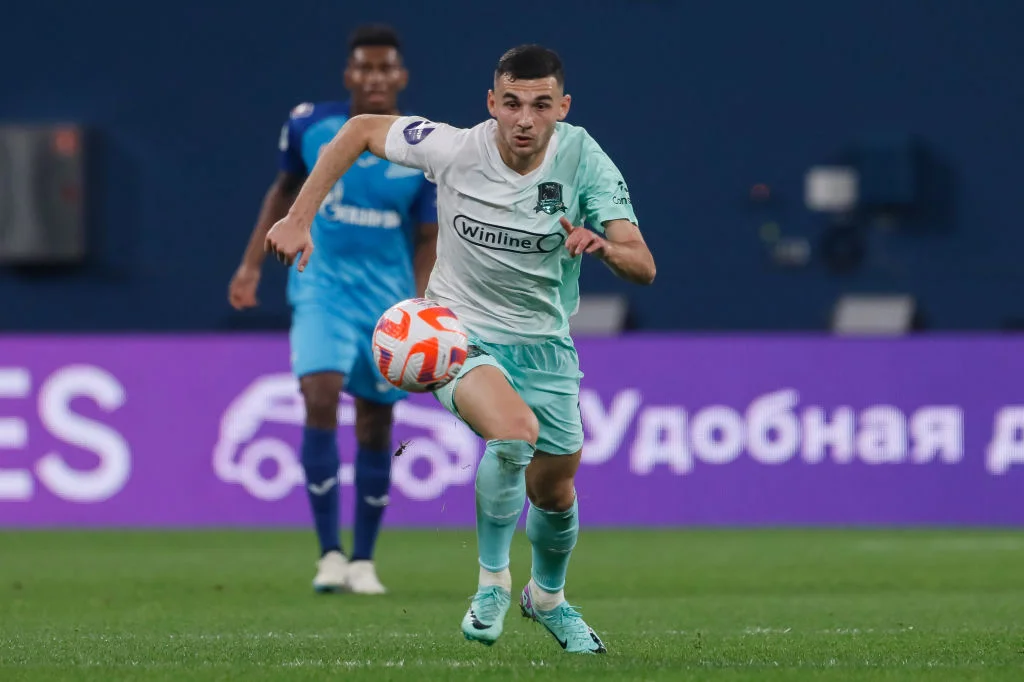 Защитник клуба «Пари Нижний Новгород» Дмитрий Тихий после матча Российской Премьер-лиги, 9 декабря 2023 года. Фото: Mike Kireev / NurPhoto / Getty Images