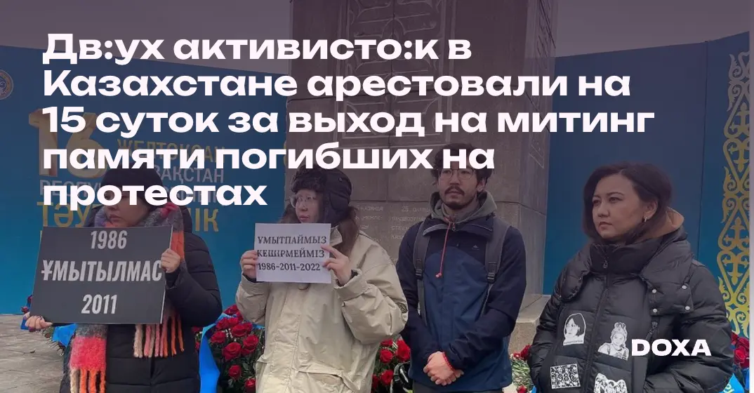 Дв:ух активисто:к в Казахстане арестовали на 15 суток за выход на митинг памяти погибших на протестах