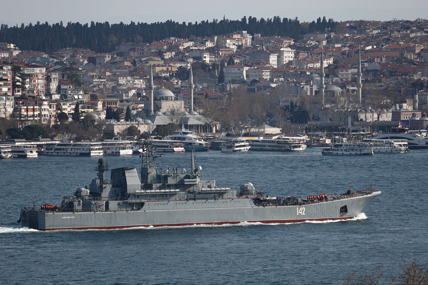Murad Sezer / Reuters / Scanpix / LETA The Novocherkassk large landing ship in the Bosphorus Strait. Istanbul, April 12, 2021.