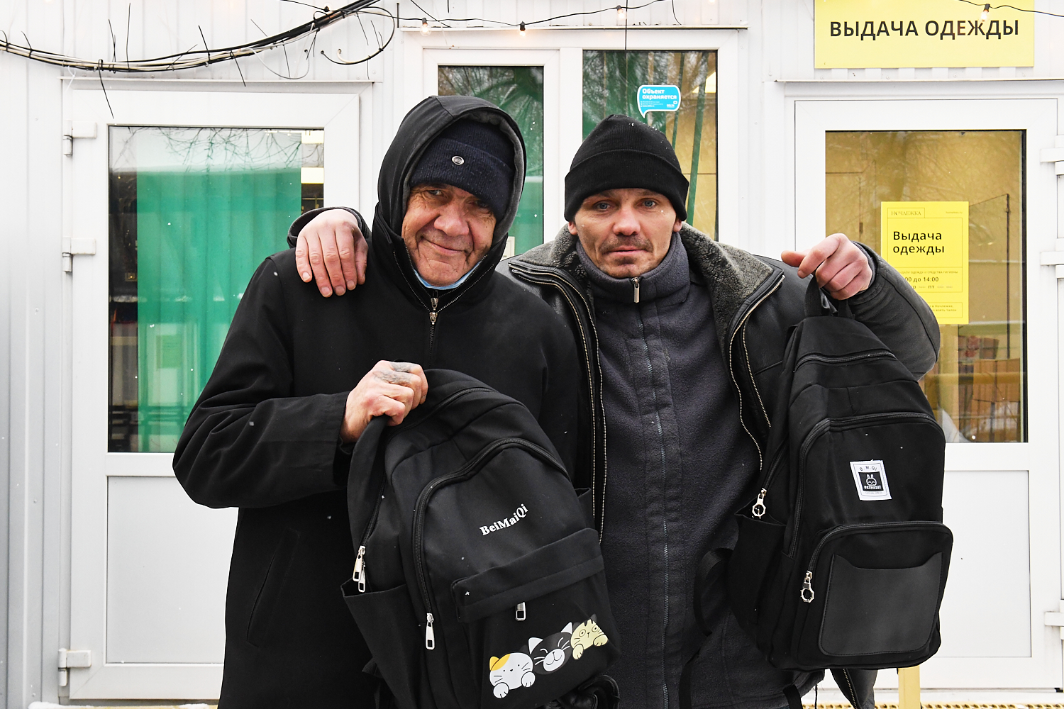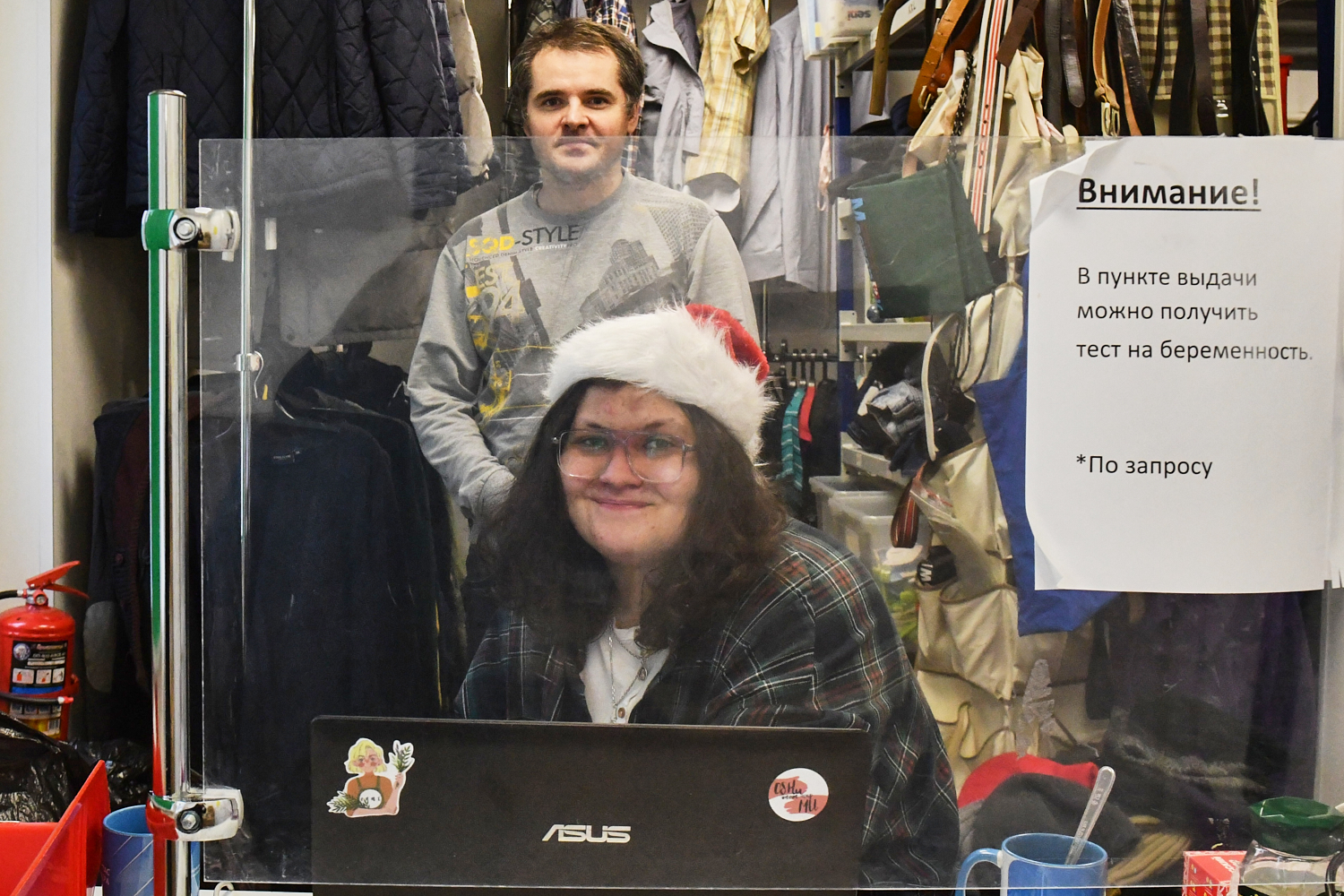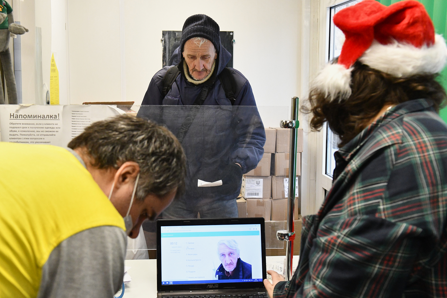 «Бумага» побывала в одном из пунктов выдачи и показывает как бездомные люди забирают предновогодние наборы.