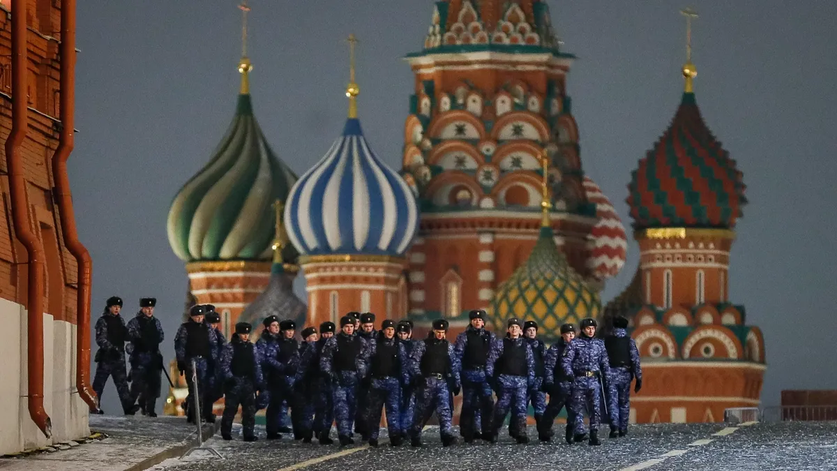 Police officers patrol Red Square in Moscow, Russia, late 31 December 2023. Photo: EPA-EFE/YURI KOCHETKOV