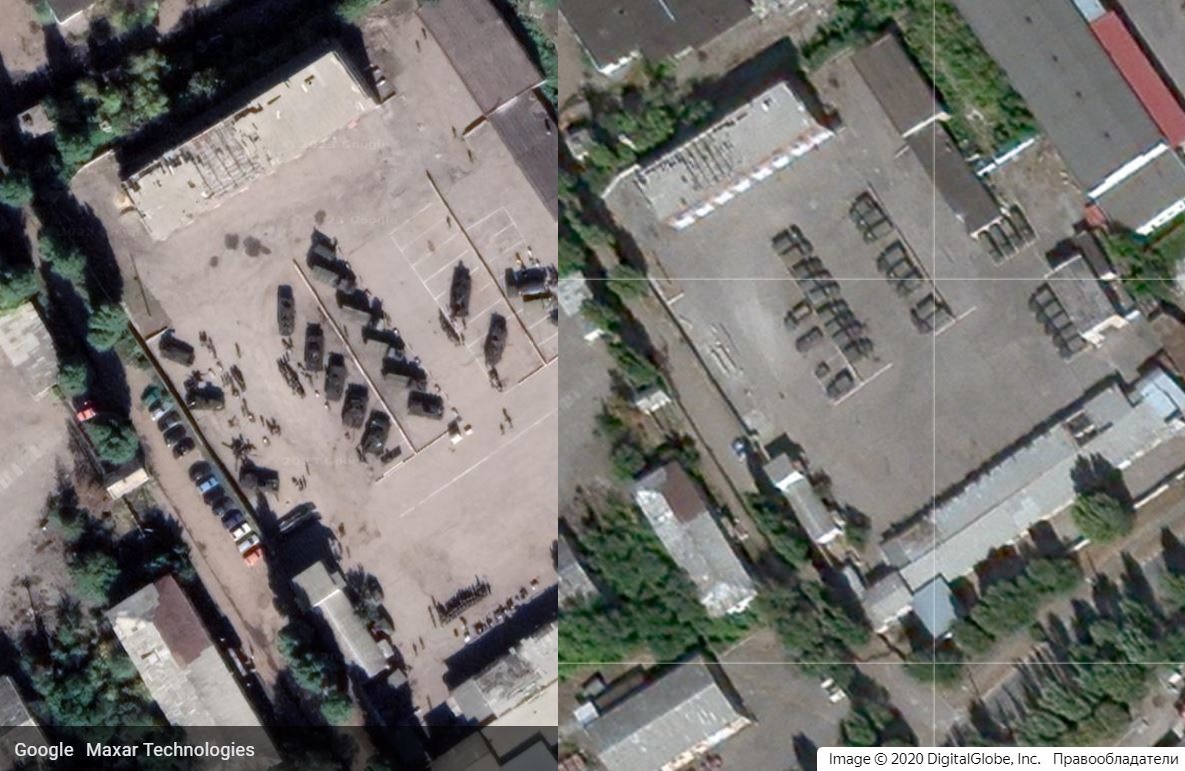 Военная техника в этом месте хорошо различима и на спутниковых снимках "Яндекса" и Google: у российского сервиса они относятся к 2019 году, у Google – к июню 2020 года, то есть "Луганская", по-видимому, непрерывно использовалась пророссийскими сепаратистами и российской армией с 2015 года для ремонта техники и, возможно, складирования боеприпасов. Геолокация "Гвоздики" и профиль Лапина позволяют утверждать, что она используется с этими целями и поныне.