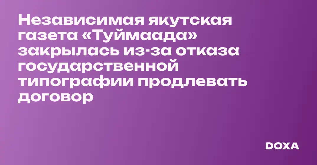 Независимая якутская газета «Туймаада» закрылась из-за отказа государственной типографии продлевать договор