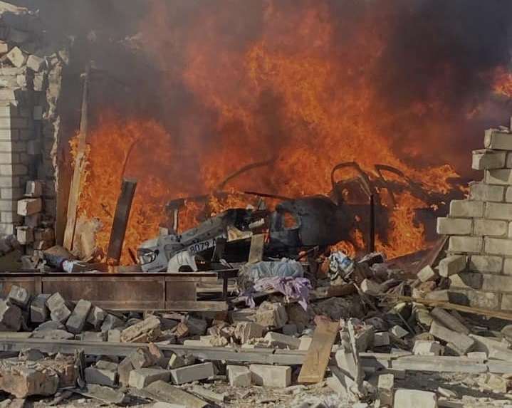 "Прилетело по жилому дому, а также в результате попадания произошел пожар на складе, где хранилась гуманитарная помощь", - говорится в сообщении.