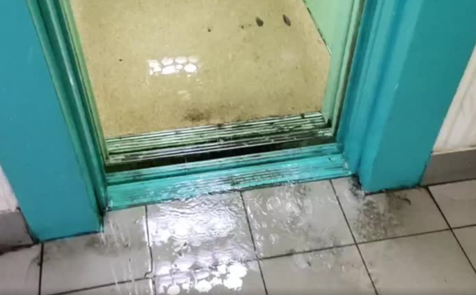 По словам жильцов, вода течет по стенам парадной и затопила лифт.