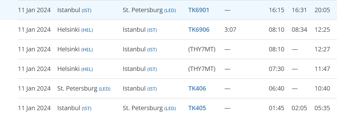 При этом днем в 13:40 и 13:55 в Пулково прибыли два рейса из Стамбула, указано на табло рейсов аэропорта.