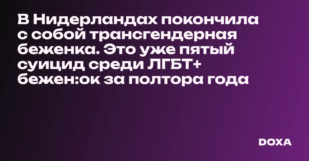В Нидерландах покончила с собой трансгендерная беженка. Это уже пятый суицид среди ЛГБТ+ бежен:ок за полтора года