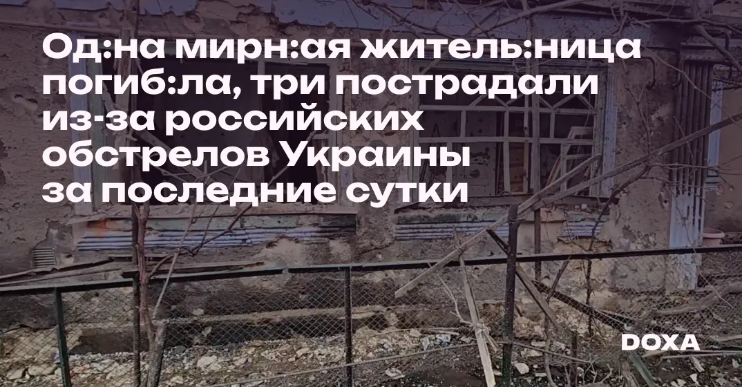 Од:на мирн:ая житель:ница погиб:ла, три пострадали из-за российских обстрелов Украины за последние сутки