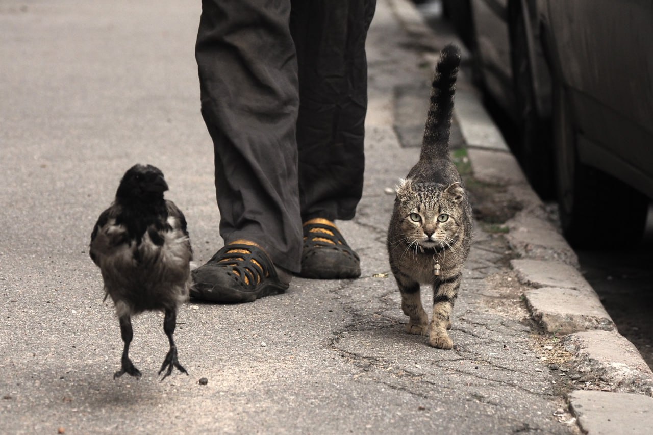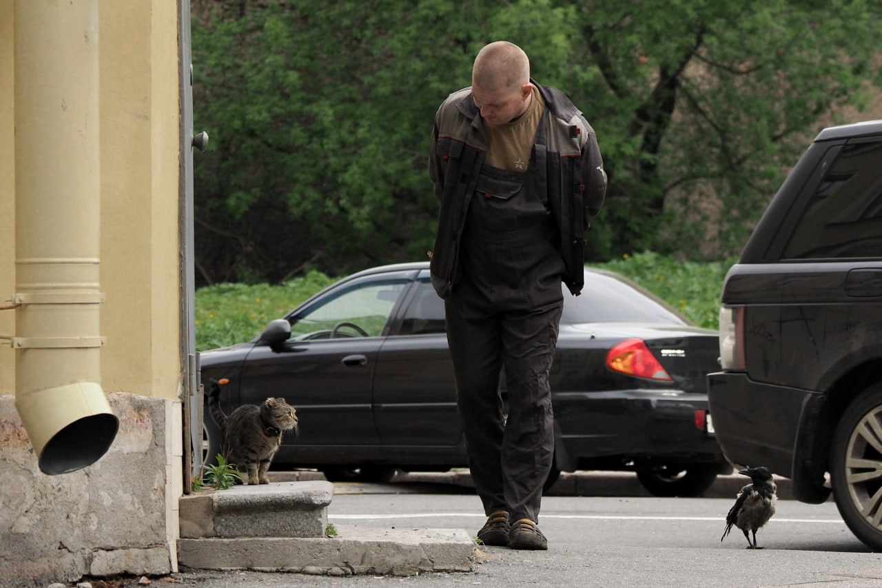 - На шиномонтаже в Коломне живут кошка и ворона — бездомных животных приютил работник мастерской. Вот их история.