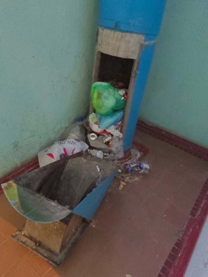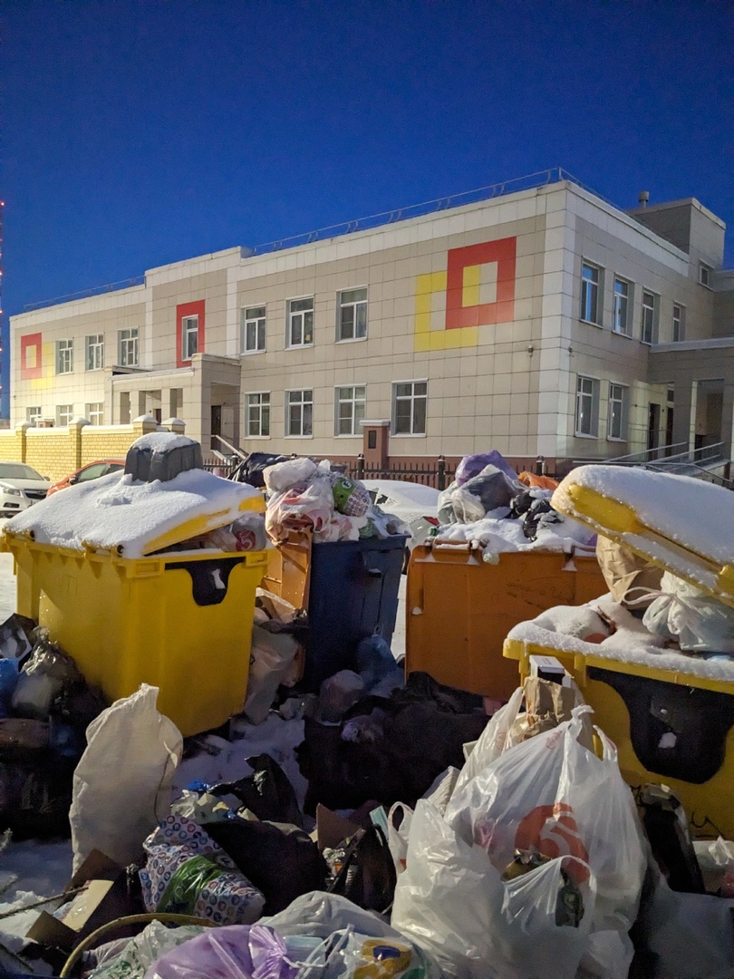 "Западная, 27 мусоропровод в первом подъезде забит до отказа, даже если открыть дверь с улицы – мусор невозможно выкинуть в контейнер, все забито!!! Такого еще никогда не было!!!!"