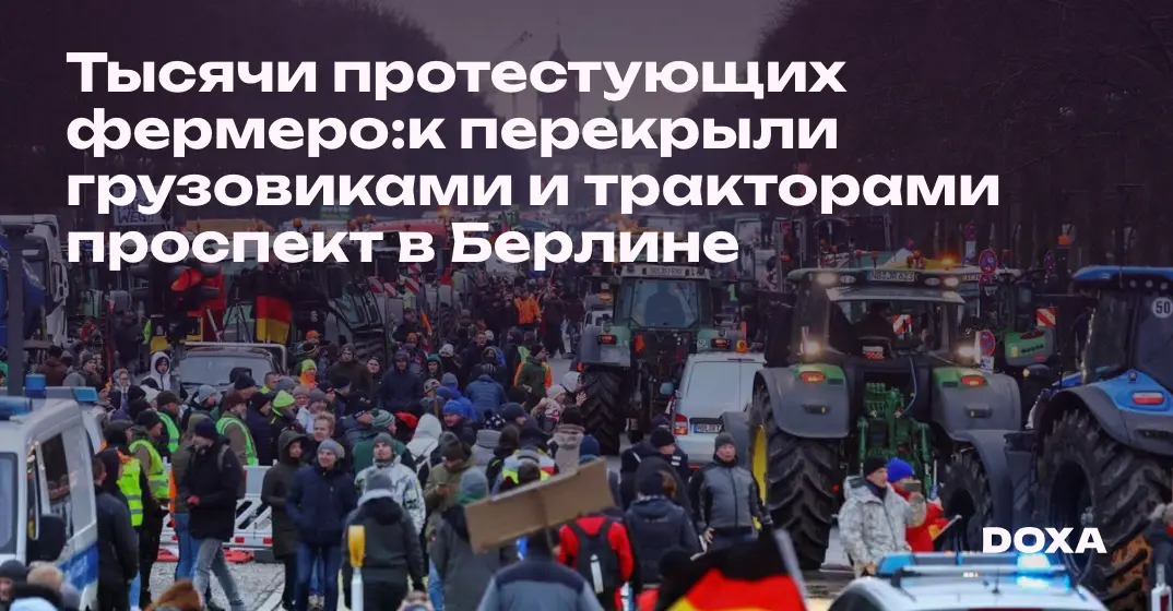 Тысячи протестующих фермеро:к перекрыли грузовиками и тракторами проспект в Берлине
