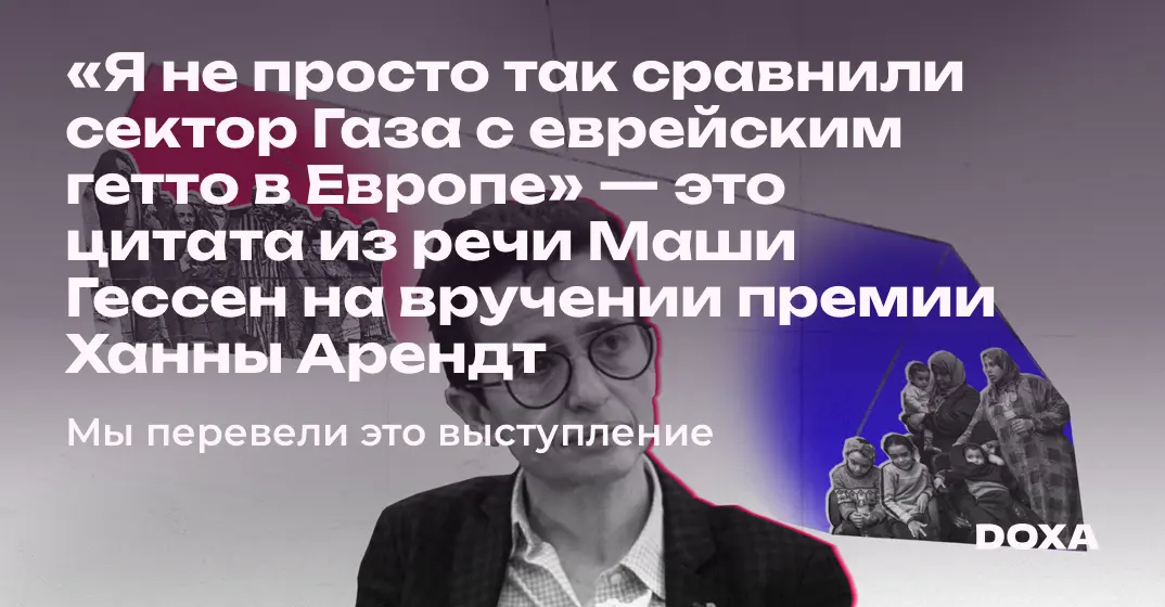 «Я не просто так сравнили сектор Газа с еврейским гетто в Европе» — это цитата из речи Маши Гессен на вручении премии Ханны Арендт
